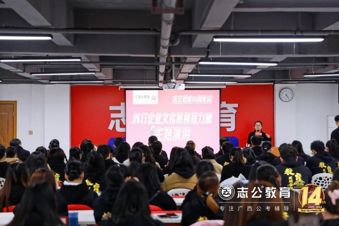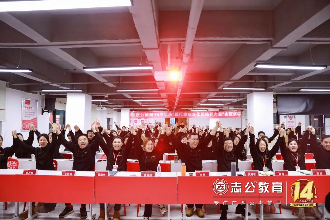 一直以來,志公教育都秉承著“12條企業(yè)文化核心價值觀”,包括客戶原則——以學(xué)員為中心”、“管理原則——人人都是經(jīng)營者”等12項原則,扎根廣西本土公考,全力服務(wù)每一位志公學(xué)員。在董事長李勇的正確領(lǐng)導(dǎo)下,在廣大學(xué)員的支持下,在全體員工的共同努力下,志公教育從無到有,從小到大,不斷夯實發(fā)展基礎(chǔ),贏得了客戶的信賴和品牌形象。全體志公人將堅定目標齊奮斗、凝心聚力再出發(fā),為志公高質(zhì)量發(fā)展再立新功。