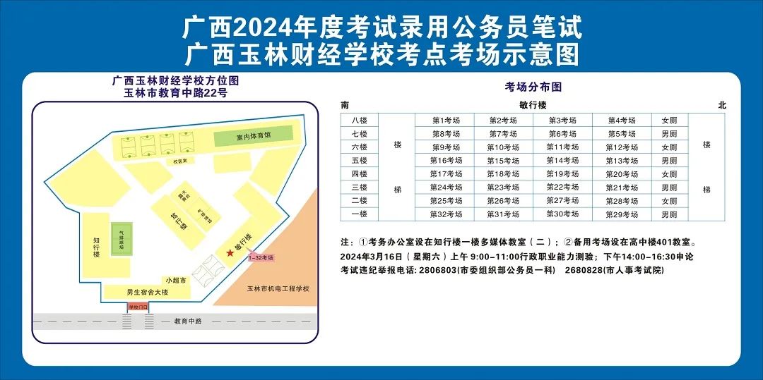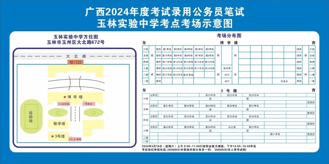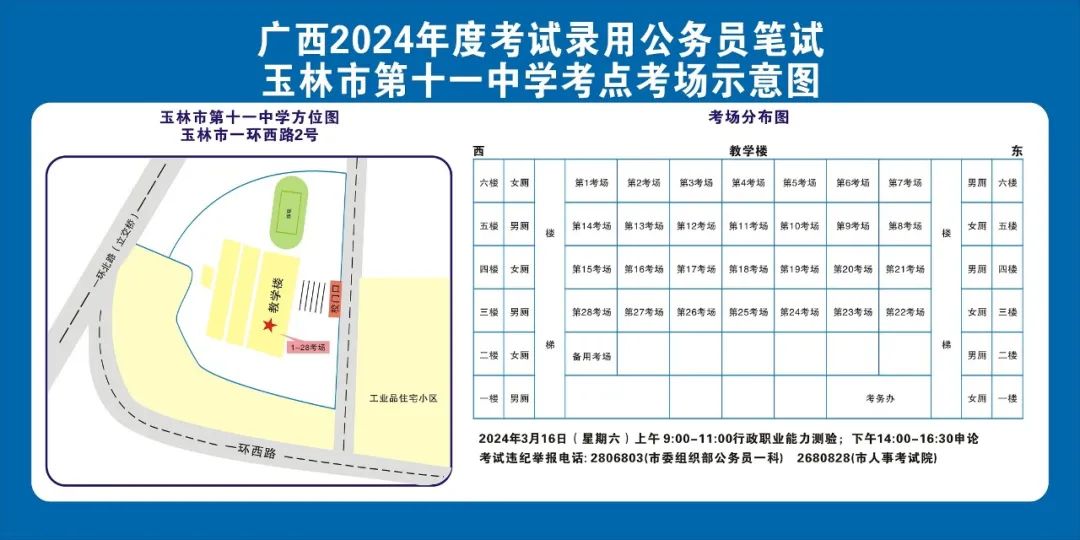 請及時登錄“廣西人事考試網(wǎng)”打印筆試準(zhǔn)考證并妥善保管,仔細(xì)查看準(zhǔn)考證上的考點(diǎn)信息。本次考試玉林考區(qū)共設(shè)10個考點(diǎn),各考點(diǎn)名稱、考點(diǎn)詳細(xì)地址如下: