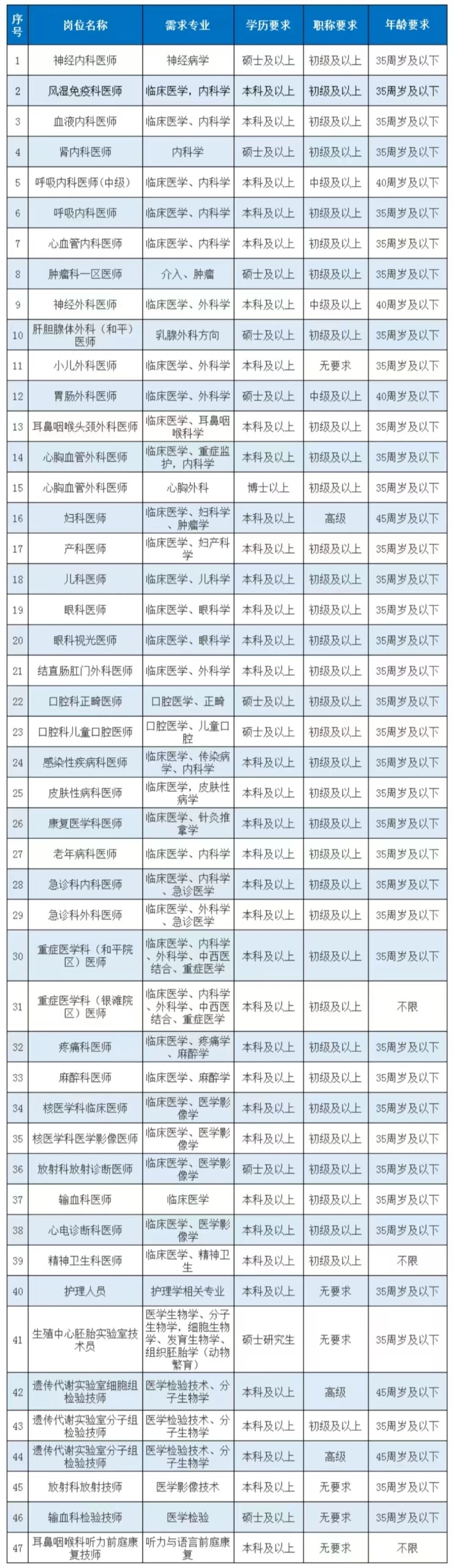 根據(jù)我院人才及學(xué)科發(fā)展需要,現(xiàn)面向社會招聘醫(yī)師、技師等崗位人才若干名,具體如下: