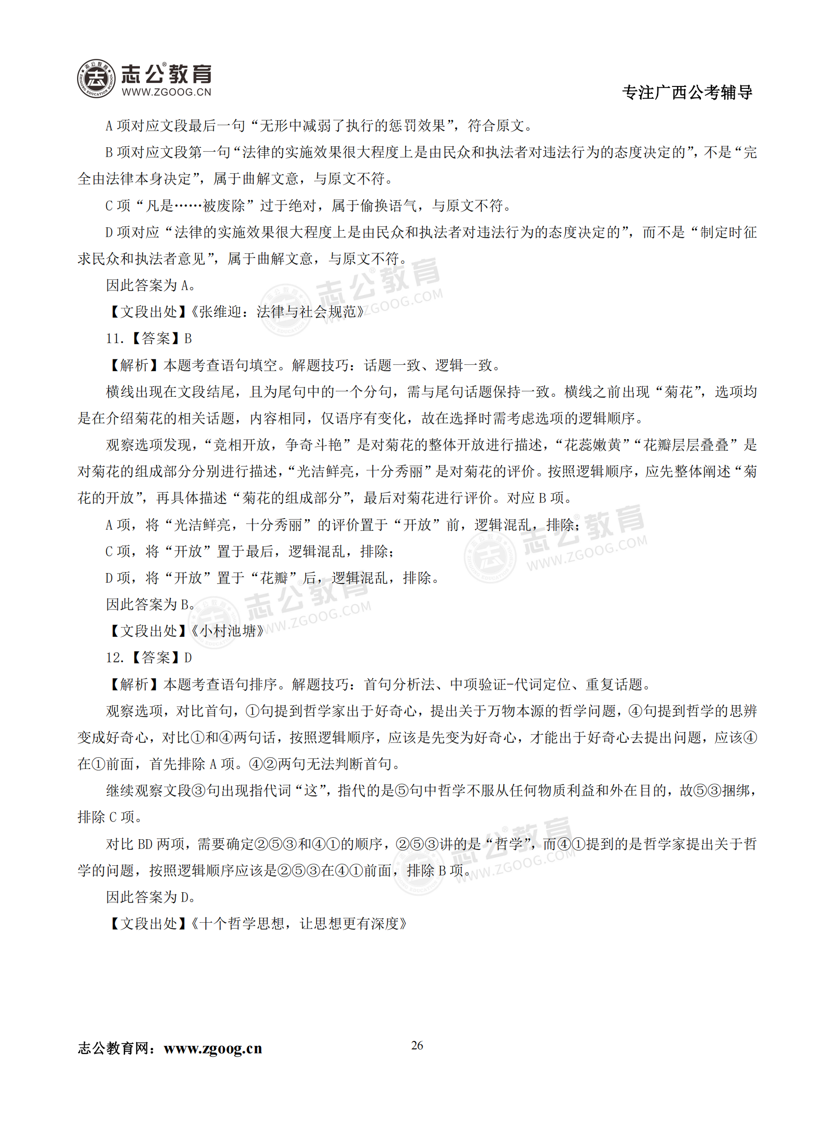 【公考模塊練習(xí)】言語理解題一(答案)