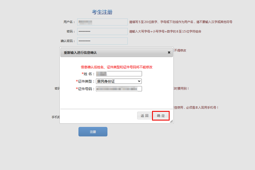 第三步:填寫完個人信息后,點擊注冊-確定,完成注冊