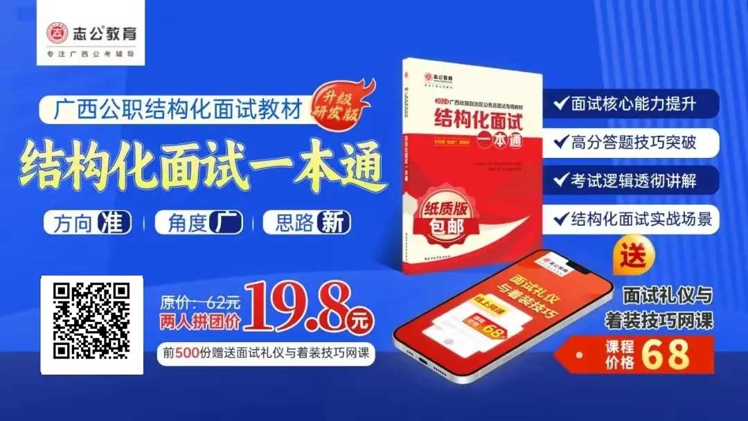 廣西區(qū)考面試準備需緊扣本土特色,強化邏輯表達和實務能力,同時注重細節(jié)(如資格復審材料、禮儀)。建議從現(xiàn)在起每天練習2-3套題,持續(xù)積累廣西熱點案例,爭取面試高分!資料已經為大家準備好了,快去看看吧!