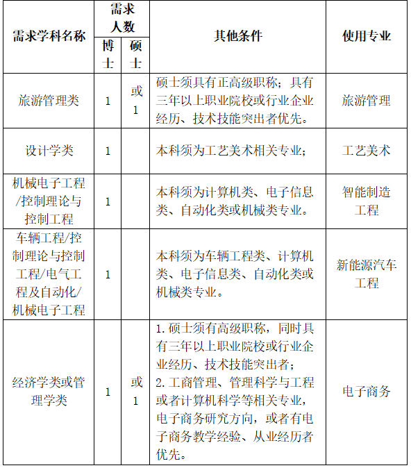 引進(jìn)對(duì)象崗位類別及條件
