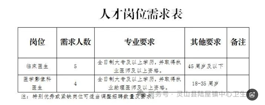 原文標題:靈山縣陸屋鎮(zhèn)中心衛(wèi)生院(靈山縣第四人民醫(yī)院)關于招聘2025年編外人員的公告