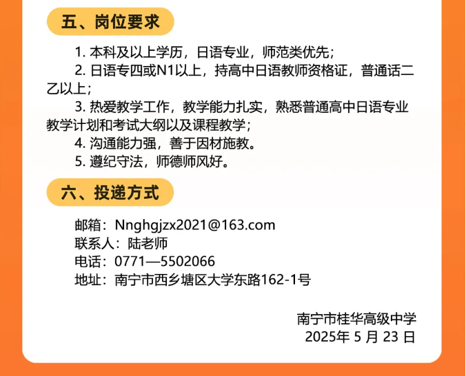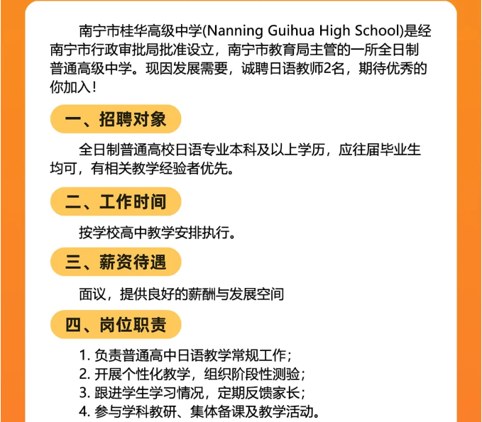 2025年廣西南寧市桂華高級(jí)中學(xué)面向社會(huì)公開招聘日語(yǔ)老師2人