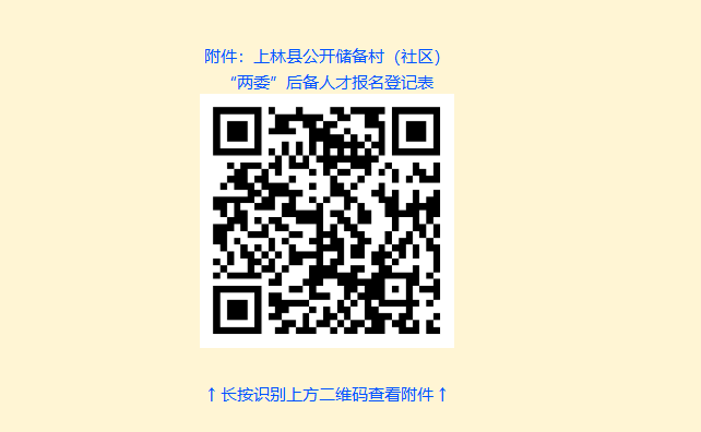 報名方式一:現場報名?,F場報名地點為各鄉(xiāng)鎮(zhèn)黨建辦,現場報名者須填寫《上林縣公開儲備村(社區(qū))“兩委”后備人才報名登記表》(詳見附件,以下簡稱《報名登記表》),并提供本人身份證、學歷學位證書、戶口簿原件及復印件(原件供現場審核;復印件以供存檔,不退回)各1份,近期小二寸正面免冠照片2張。