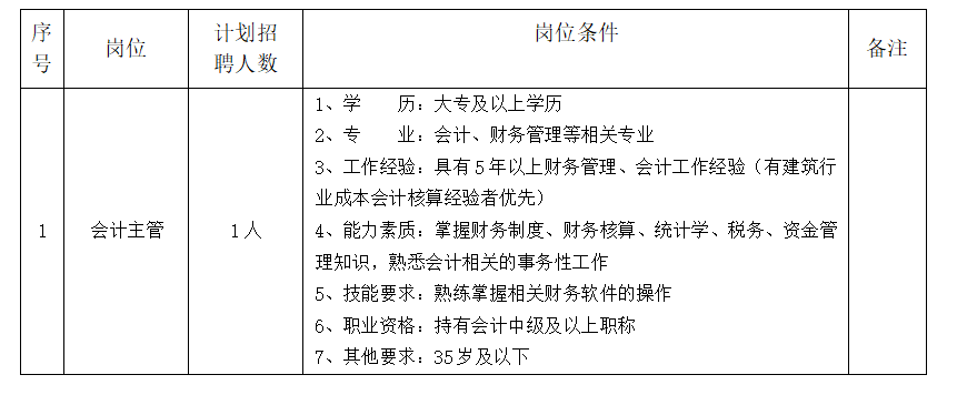 根據(jù)我公司業(yè)務(wù)發(fā)展需要,現(xiàn)面向社會(huì)公開(kāi)招聘會(huì)計(jì)主管1名,相關(guān)事宜如下: