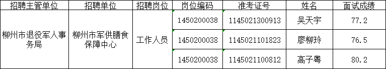 2025年柳州市事業(yè)單位公開(kāi)考試招聘工作人員面試成績(jī)