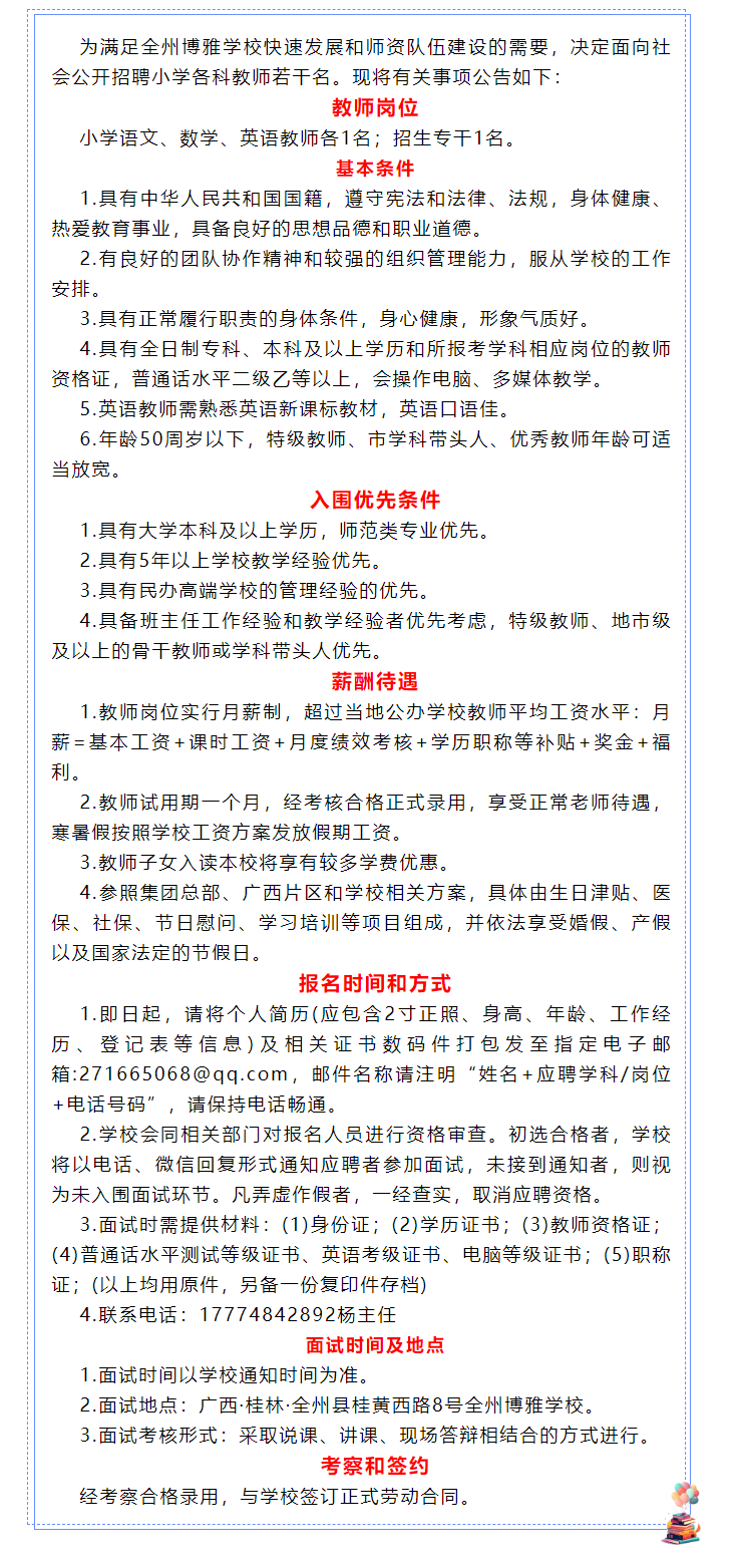 原文標(biāo)題:全州博雅學(xué)校面向全國誠聘教育精英