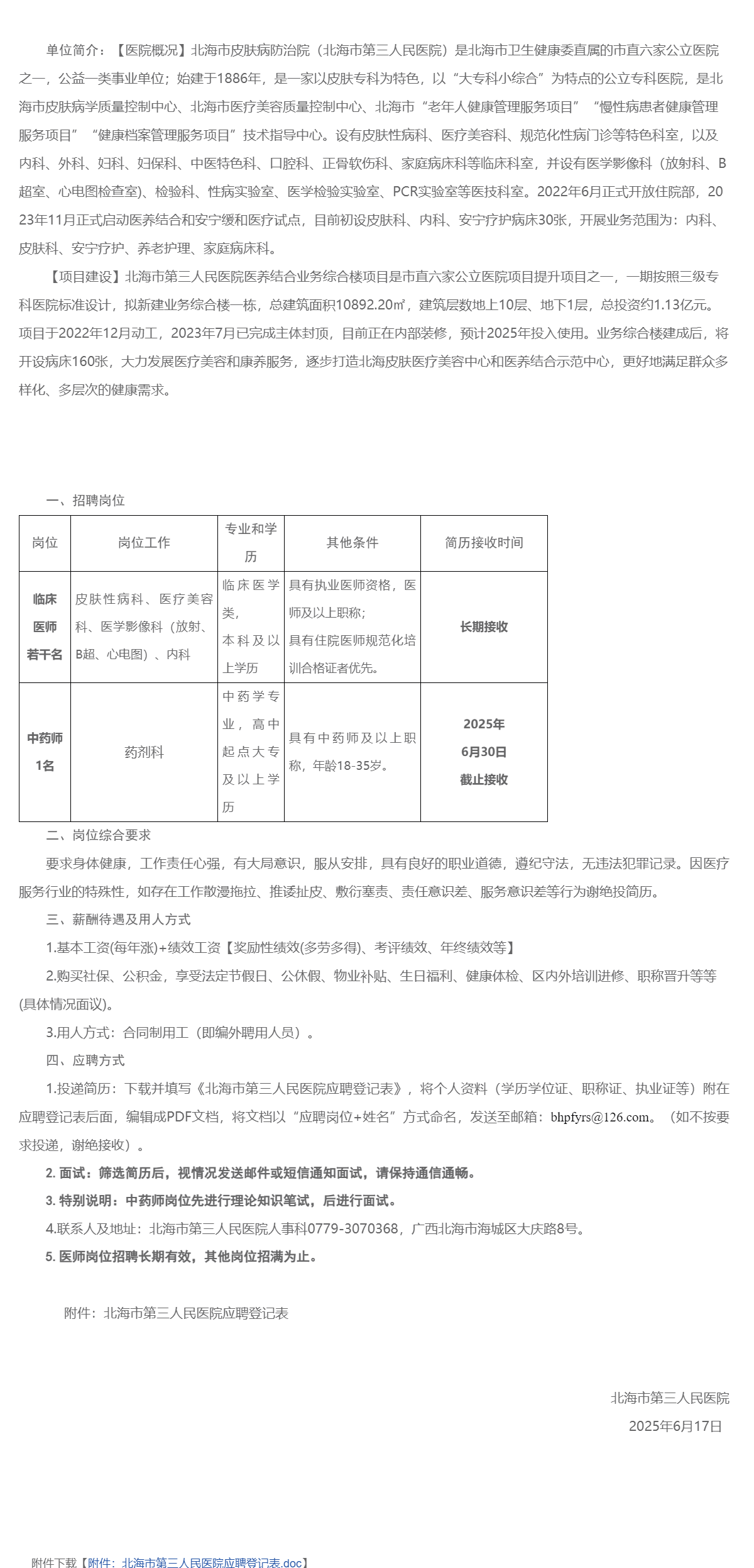 原文標題:北海市第三人民醫(yī)院招聘啟事