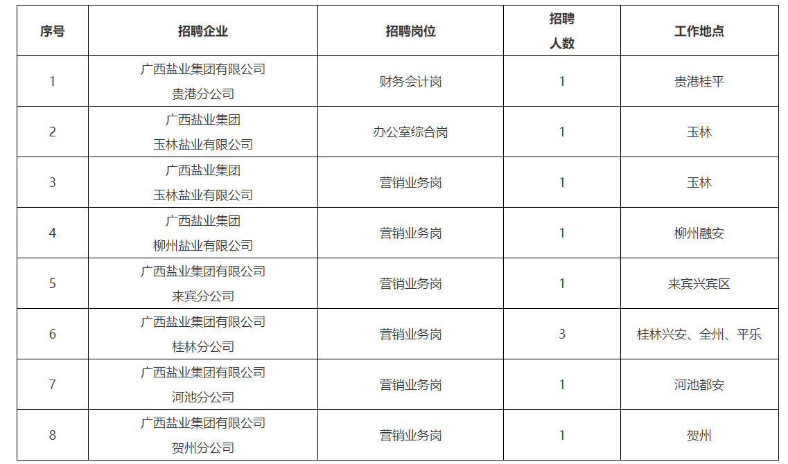 具體招聘崗位、任職要求、崗位職責(zé)見附件《廣西鹽業(yè)集團(tuán)招聘崗位職責(zé)及任職要求》。