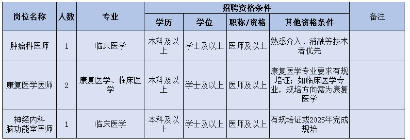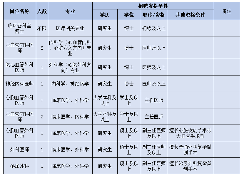 ③列入醫(yī)院人才引進目錄或醫(yī)院根據專科發(fā)展需要的崗位人才,人才資格條件按特殊情況辦理,采用一人一議。