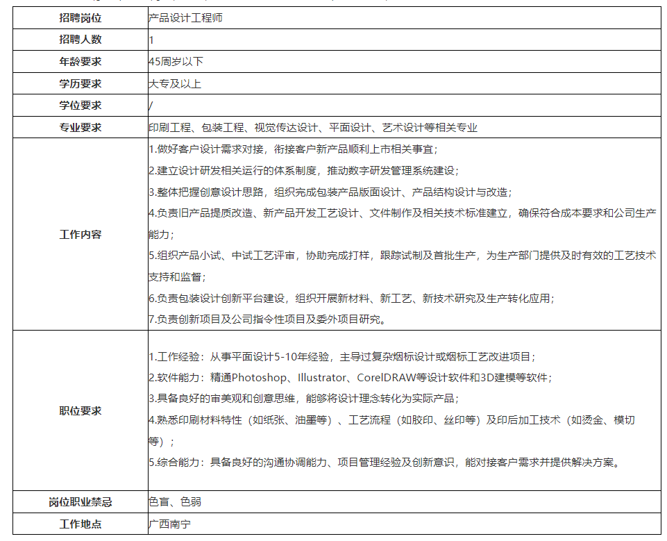 公司以創(chuàng)新引領(lǐng)發(fā)展,公司先后獲得“全國印刷示范企業(yè)”、“中國煙標(biāo)印刷行業(yè)最具實(shí)力十大領(lǐng)軍企業(yè)”、“廣西制造業(yè)企業(yè)50強(qiáng)”,連續(xù)三年獲得“廣西優(yōu)秀企業(yè)”、“賀州市億元納稅企業(yè)”等榮譽(yù)稱號。公司秉承以人為本的理念,尊重人才、重視人才,開展員工職業(yè)發(fā)展規(guī)劃,為每一位員工提供廣闊的發(fā)展機(jī)會,充分發(fā)揮員工自主性和創(chuàng)造性。根據(jù)公司發(fā)展需要,現(xiàn)面向社會公開招聘員工。具體事項(xiàng)公告如下: