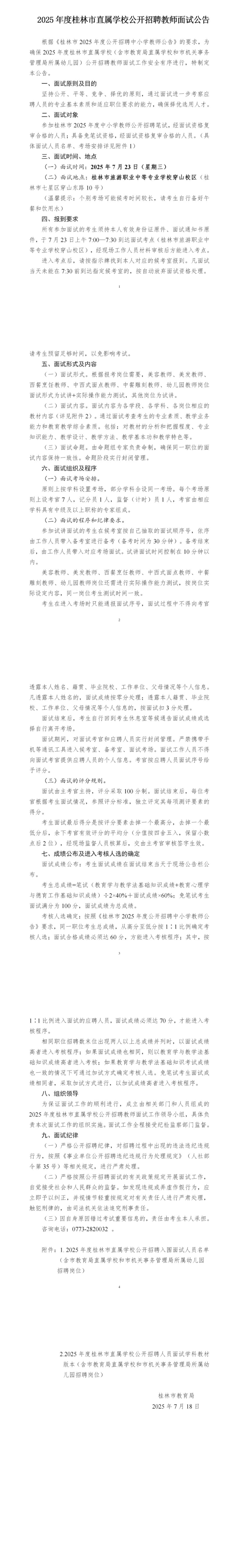 2025年度桂林市直屬學校公開招聘教師面試公告