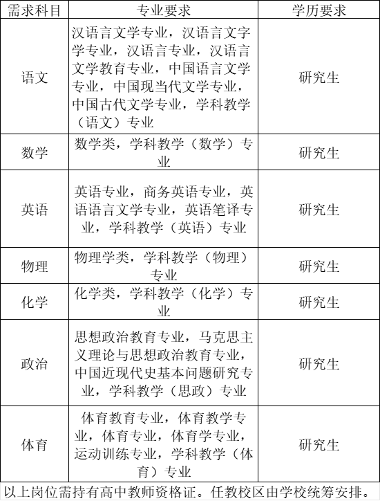 根據(jù)學校工作要求,現(xiàn)面向全社會招聘代課教師,有關事項公告如下:?崗位需求