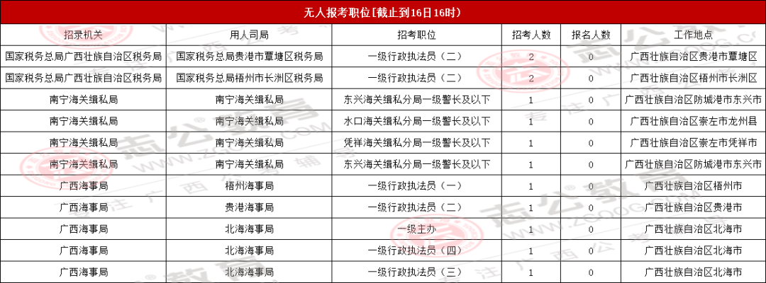 考生們注意!截至10月16日16時(shí),2026國(guó)考(廣西)地區(qū)還有71個(gè)無(wú)人報(bào)考,占全部748個(gè)職位的9.49%。想避開(kāi)激烈競(jìng)爭(zhēng)的話(huà),不妨結(jié)合自己的條件,多看看這些冷門(mén)崗位~