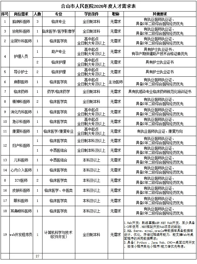 原文標題:合山市人民醫(yī)院2026年人才招聘公告