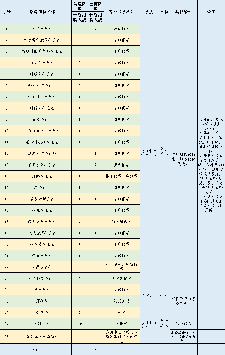 2.具有規(guī)培合格證的醫(yī)生依照國衛(wèi)辦科教發(fā)〔2021〕18號文件,落實“兩個同等對待”政策,即“面向社會招收的普通高校應屆畢業(yè)生培訓對象培訓合格當年在醫(yī)療衛(wèi)生機構(gòu)就業(yè)的,在招聘、派遣、落戶等方面,按當年應屆畢業(yè)生同等對待。對經(jīng)住培合格的本科學歷臨床醫(yī)師,在人員招聘、職稱晉升、崗位聘用、薪酬待遇等方面,與臨床醫(yī)學、中醫(yī)專業(yè)學位碩士研究生同等對待”。普通崗位規(guī)培醫(yī)師給予一年住房補貼500元/月,急需崗位規(guī)培醫(yī)師安家費稅前4萬元,急需崗位醫(yī)師必須注冊相應崗位執(zhí)業(yè)范圍。