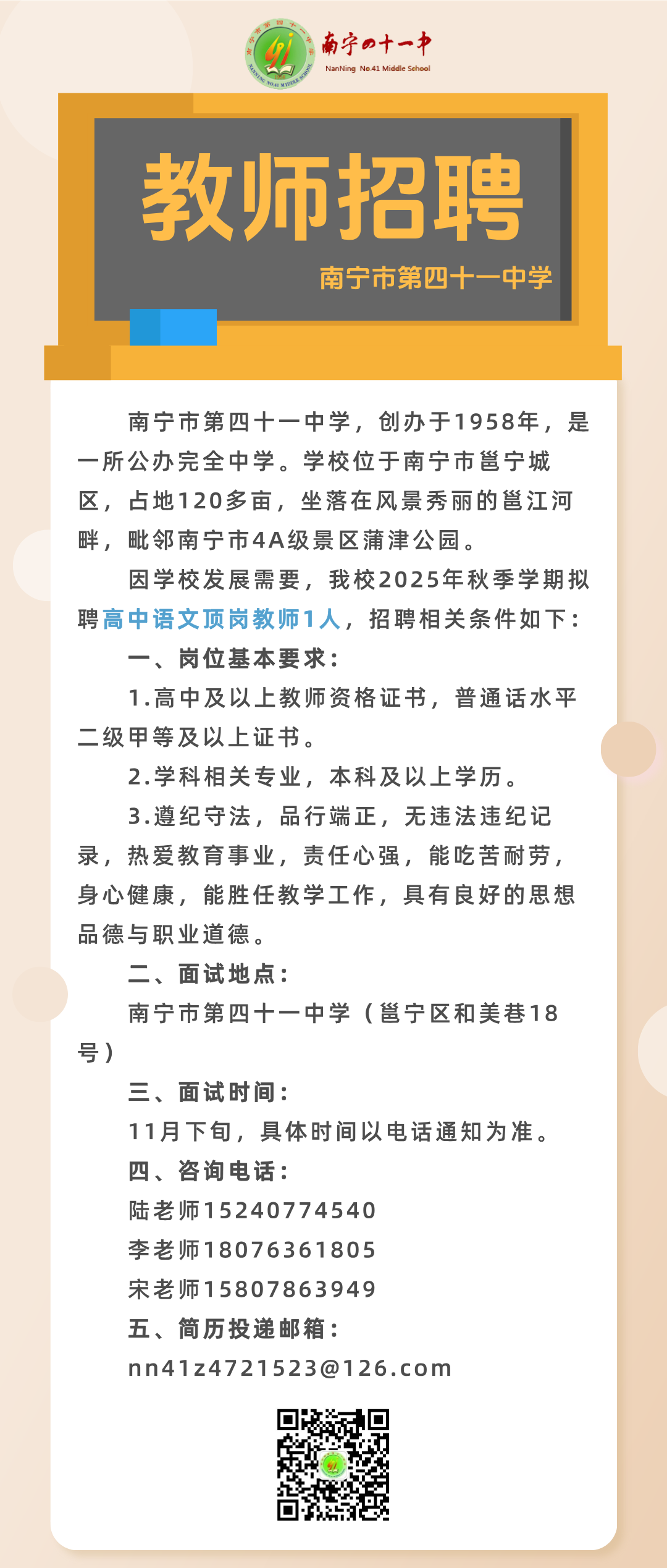 原文標(biāo)題:2025年秋季學(xué)期南寧市第四十一中學(xué)關(guān)于公開(kāi)招聘頂崗教師的啟事