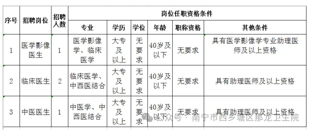 原文標(biāo)題:2025年南寧市西鄉(xiāng)塘區(qū)那龍衛(wèi)生院公開招聘編外工作人員公告